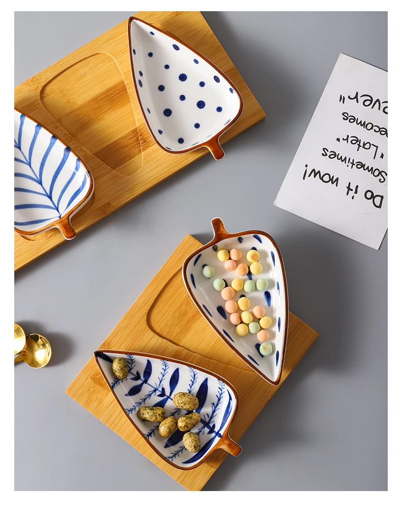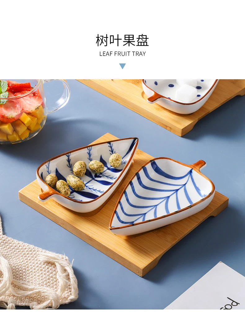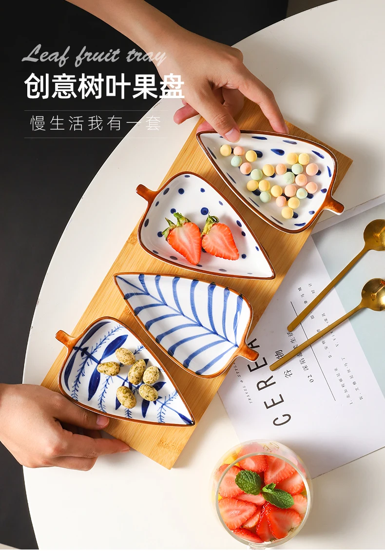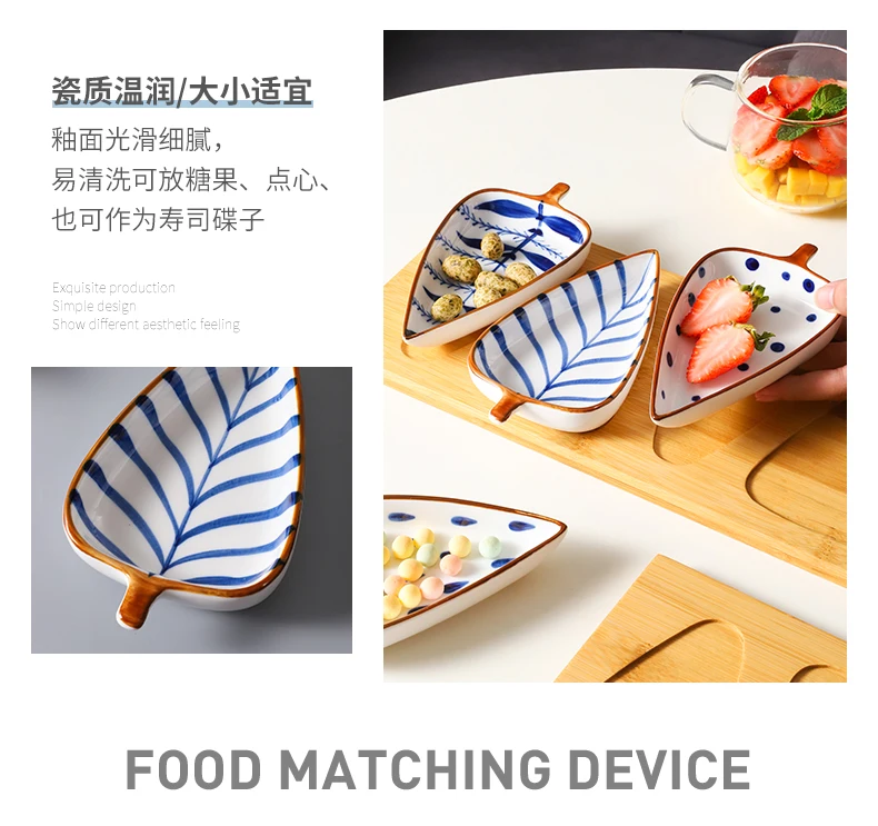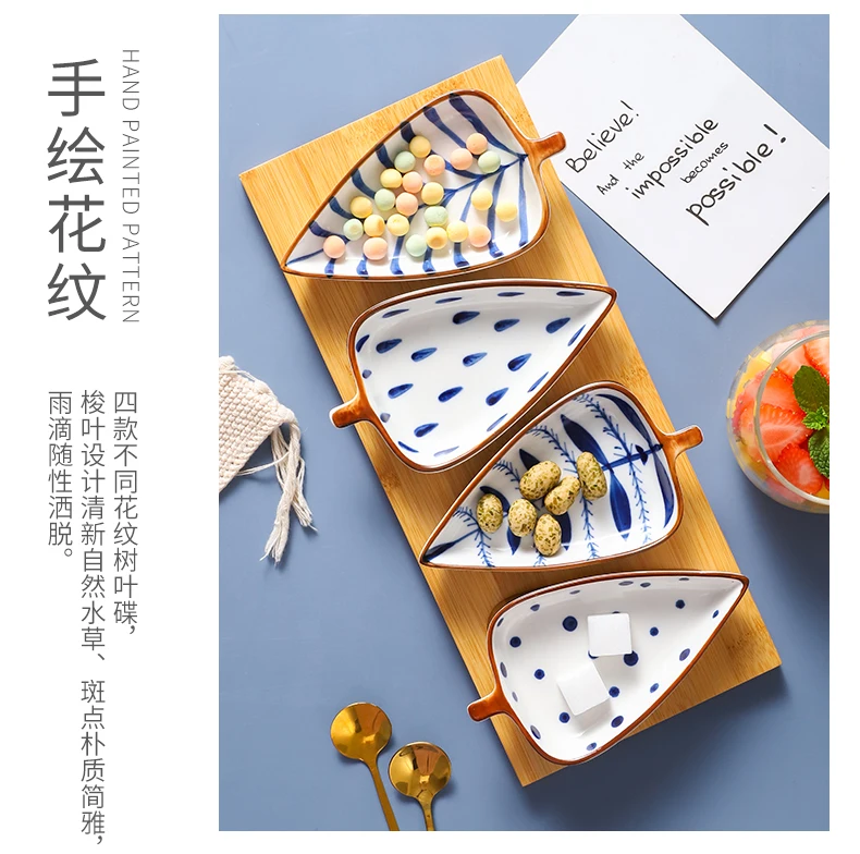 Creative Leaf Shape Seasoning Bowl Ceramic Dish Small Plates Appetizers Snack Dish Kitchen Sauce Dishes Sushi Cake Serving Tray