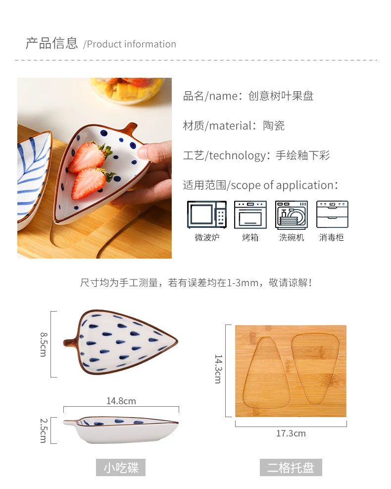 Be the first to review “Creative Leaf Shape Seasoning Bowl Ceramic Dish Small Plates Appetizers Snack Dish Kitchen Sauce Dishes Sushi Cake Serving Tray”