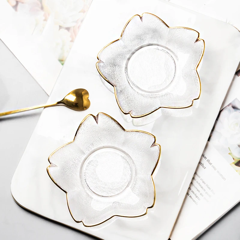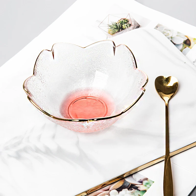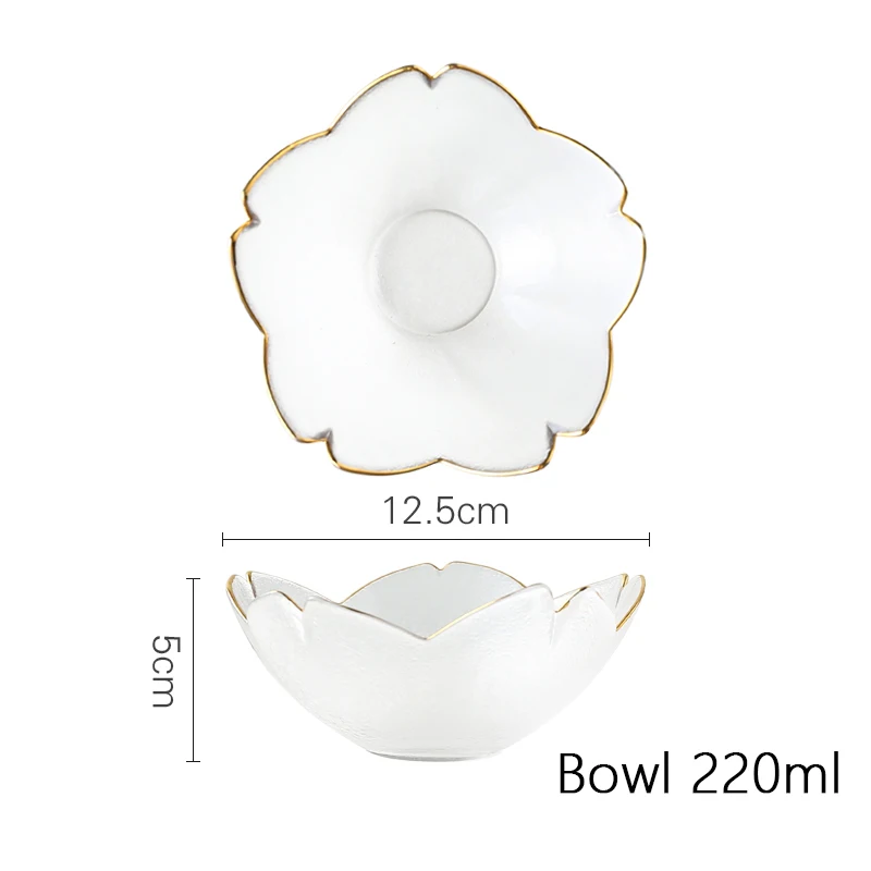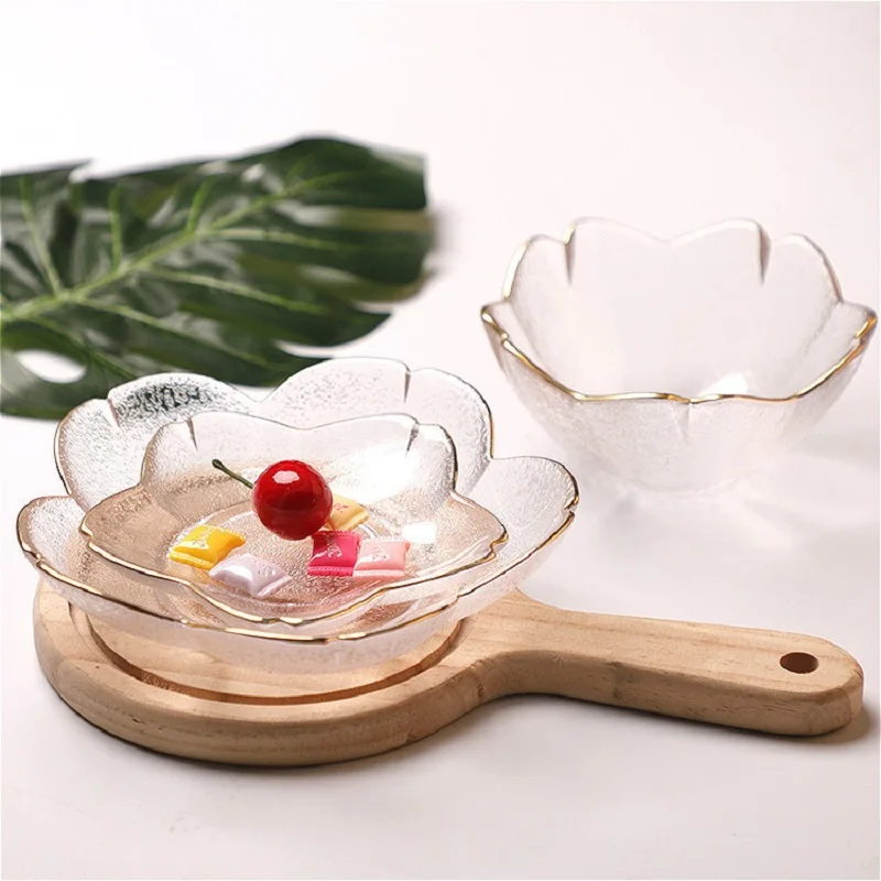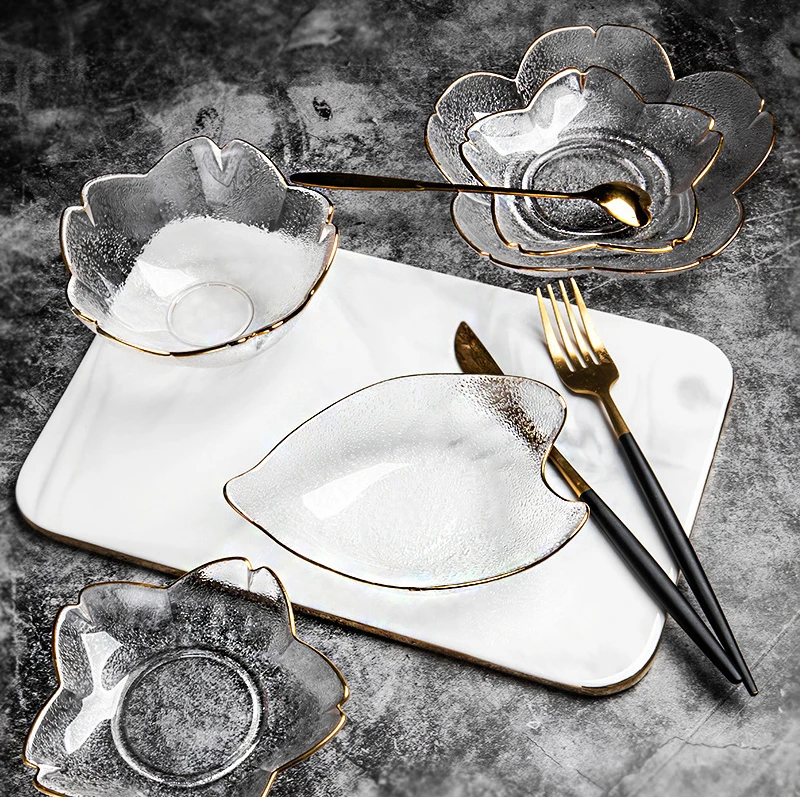 Gold Rim Glass Salad Bowls Dinner Plates Kitchen Utensils Glass Soup Plate Fruit Dishes Cooking Dinnerware Food Container